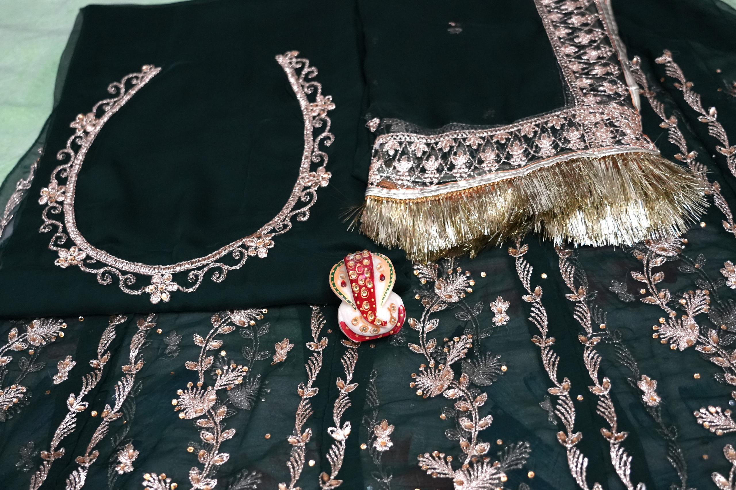 Dark Green poshak with Odhna Zari Work (Chapat)