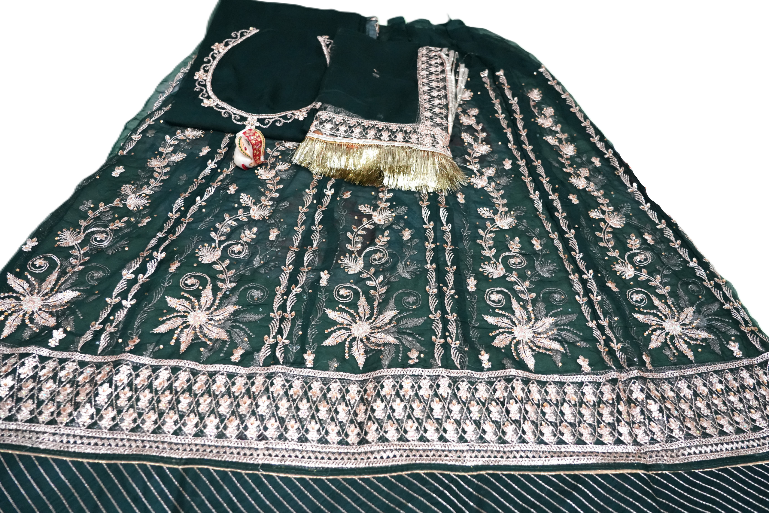 Product Name: Dark Green poshak with Odhna Zari Work (Chapat)