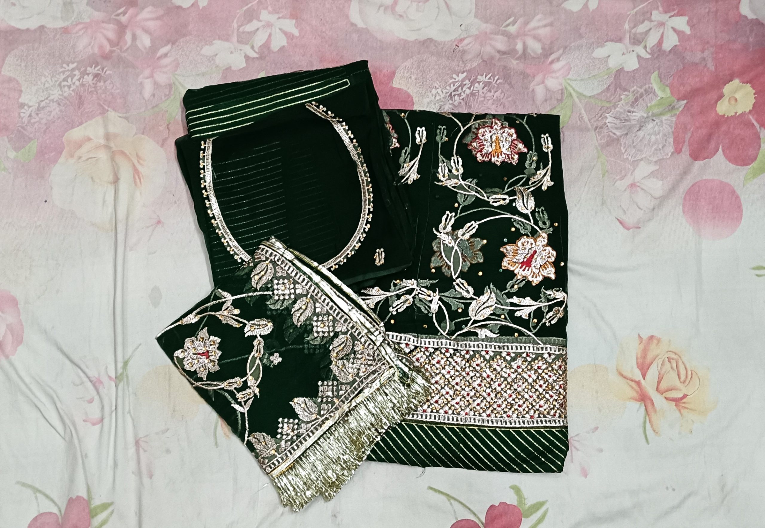 Inclusions: 1 Odhna, 1 Kurti, 1 Kanchali , 1 Lehenga ( UNSTITCHED)